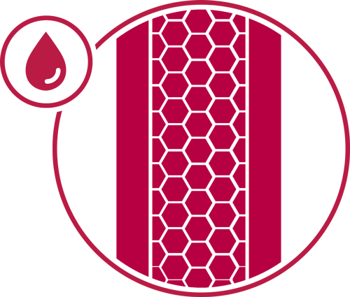 Dieses Verhalten ermöglicht der Superabsorber im Laminat, der bei Wasserkontakt zunächst aufquillt und so alle Durchtrittsöffnungen, die im trockenen Zustand die ultra hohe Luftdurchlässigkeit ermöglichen, fest verschließt.